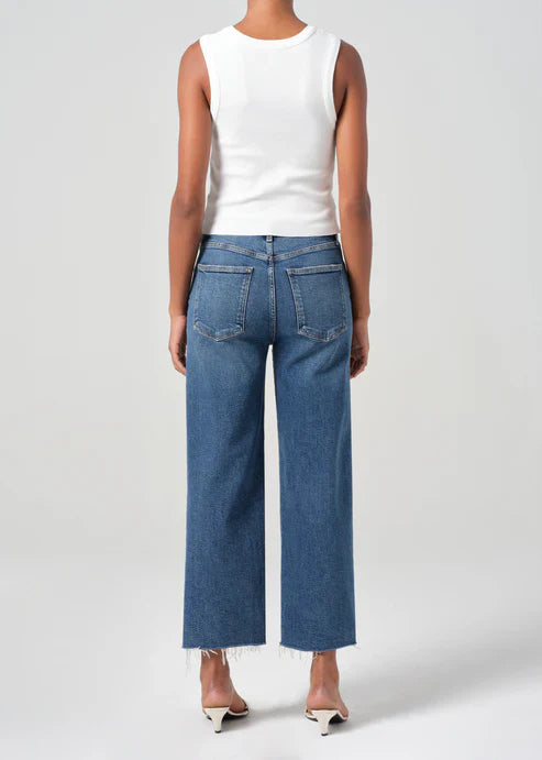The Harper is a relaxed mid-rise with a flattering square top block and a straight yet subtle cropped wide leg.